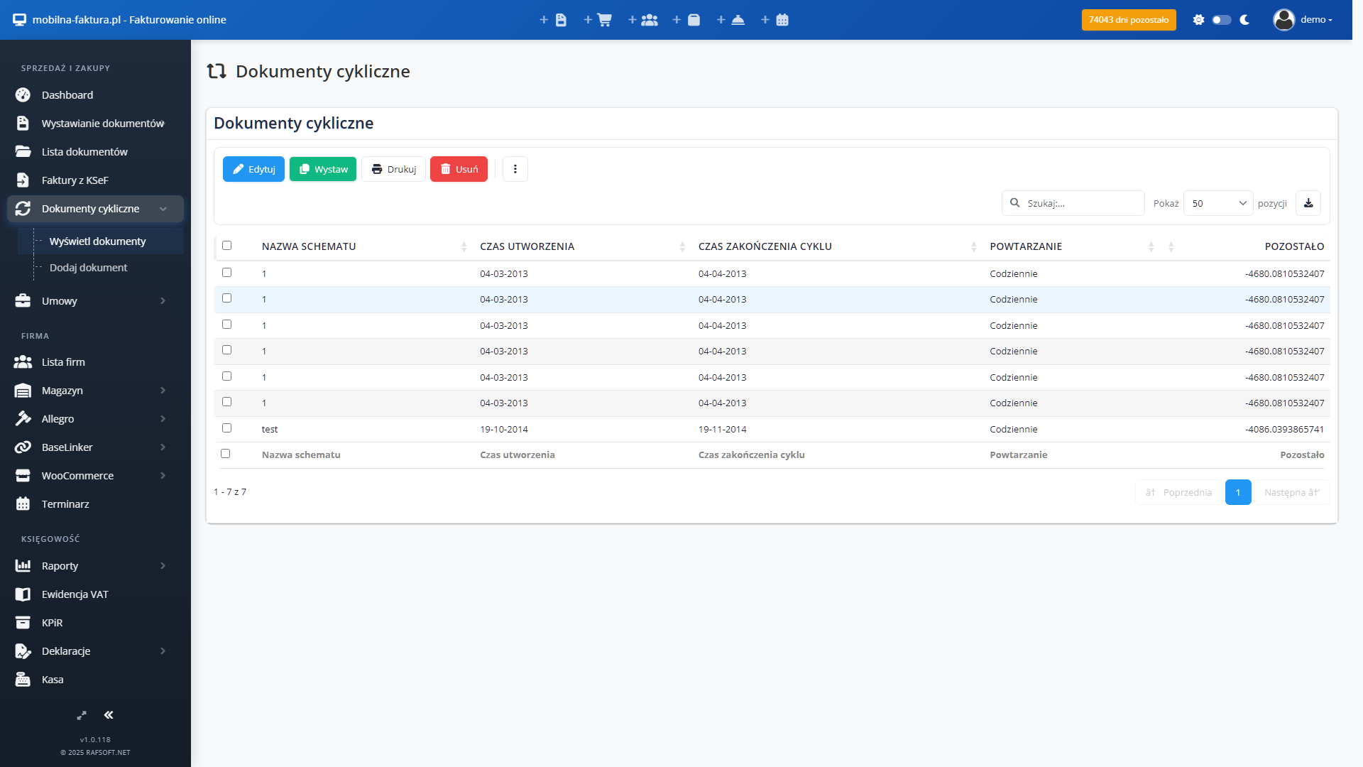 - Wszystkie faktury sprzedażowe są wprowadzone