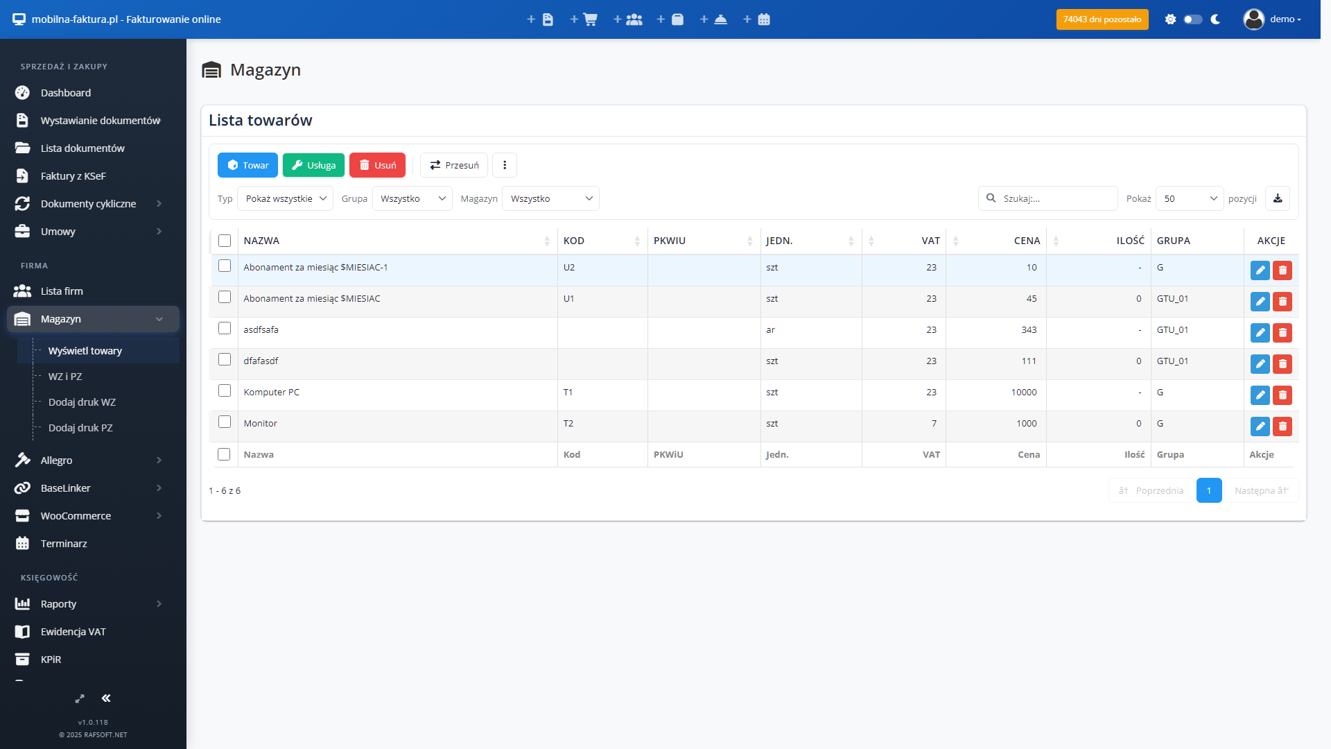 - Wystawianie dokumentów WZ (wydanie) i PZ (przyjęcie)